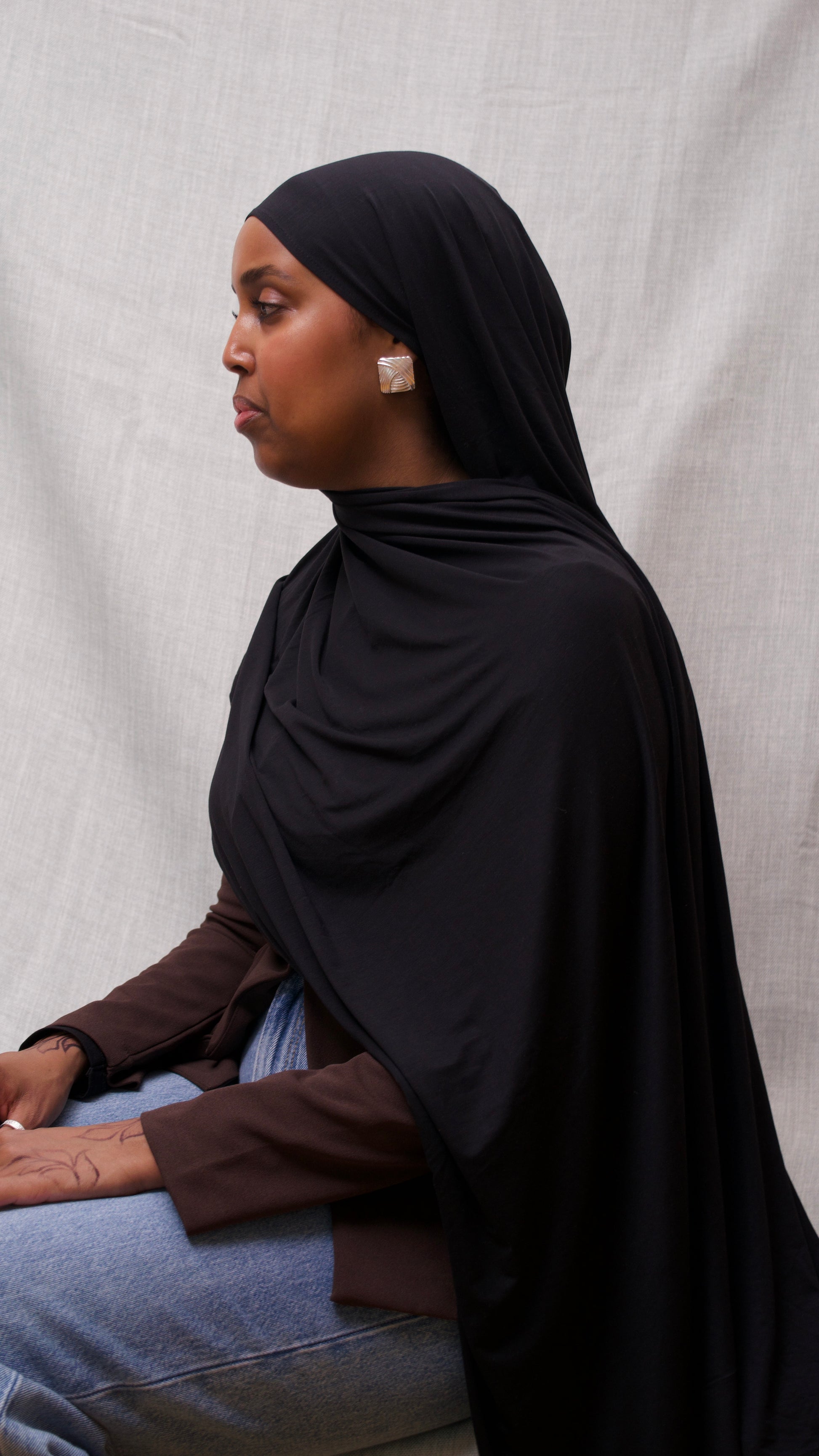 Vår premium hijab i black är tillverkad i exklusiv bamboo jersey – ett mjukt, andningsbart och naturligt material som ger en lyxig känsla mot huden.